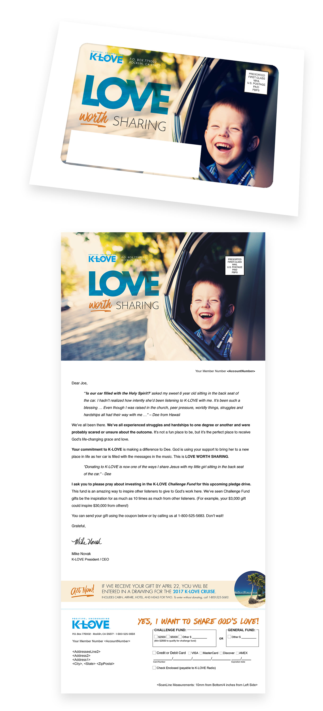 Direct Mail for K-LOVE Spring 2016 Pledge Drive