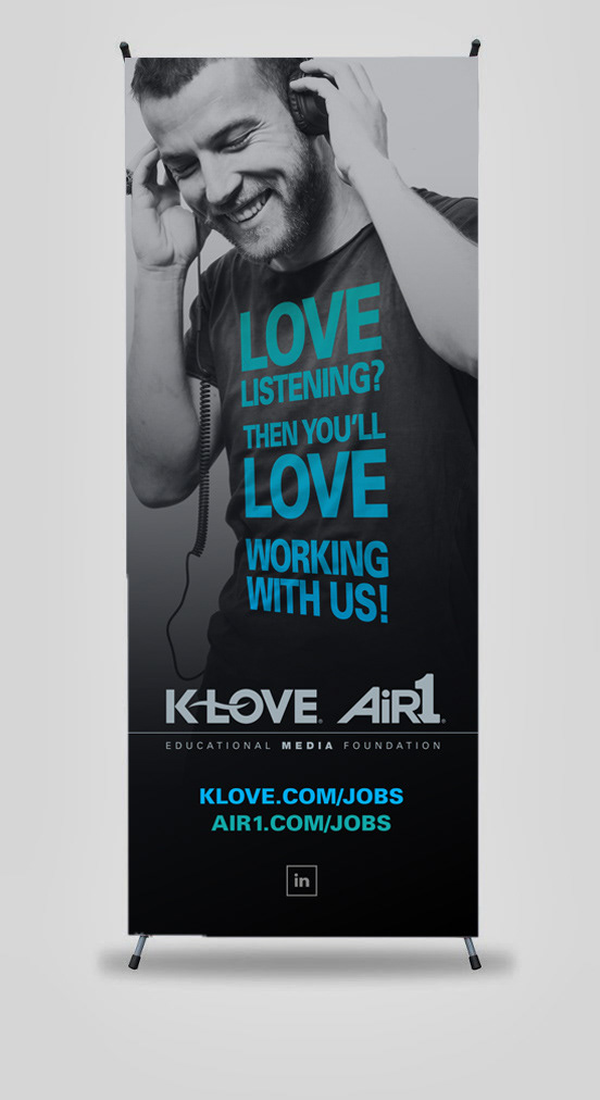 X-banner for use at Job Fairs by recruiter for K-LOVE and Air1 Radio.