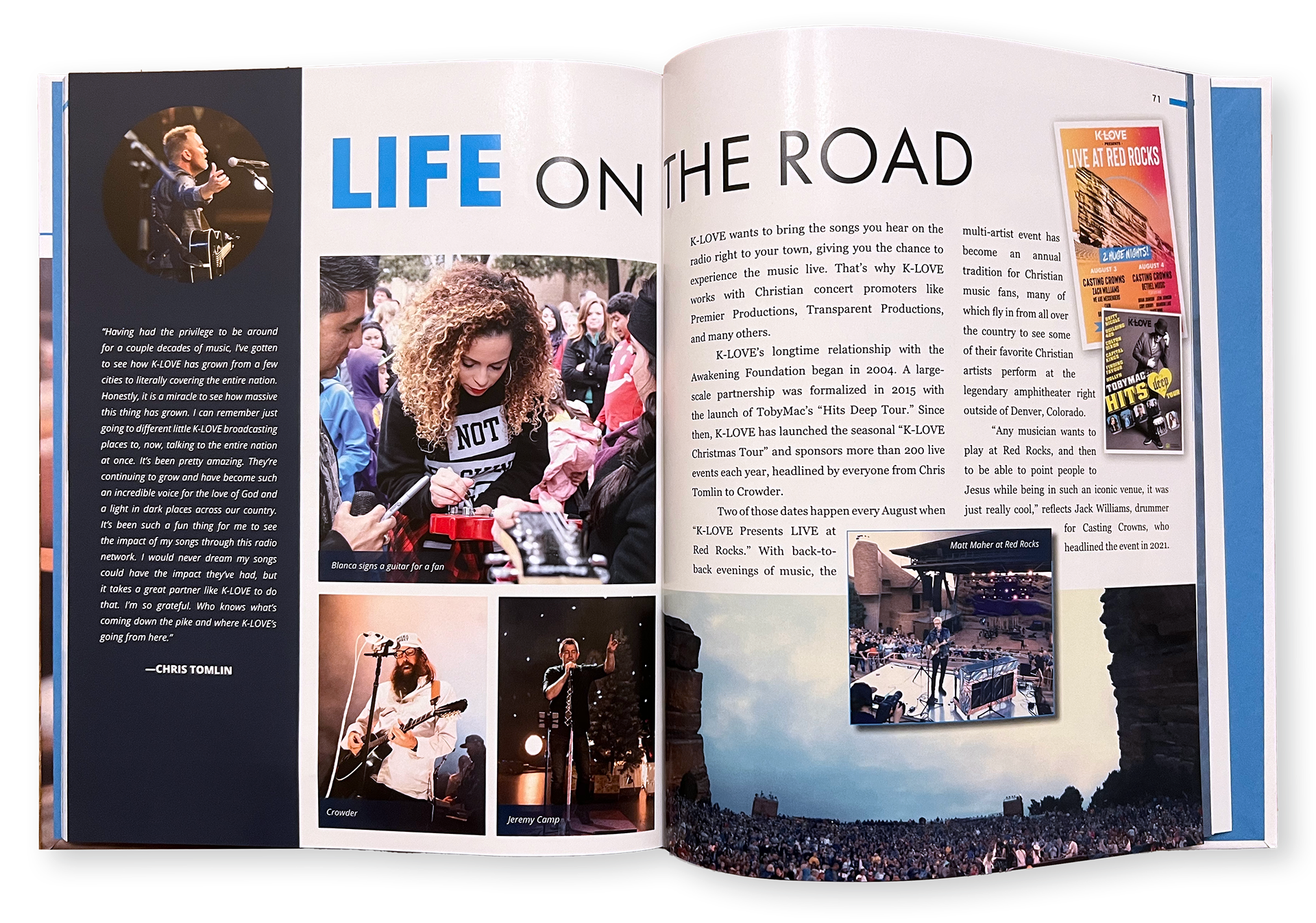 Coffee-table book to capture the 40-year history of K-LOVE Radio. I created the cover design, art-directed, designed several of the layouts within the book and sourced most of the images.